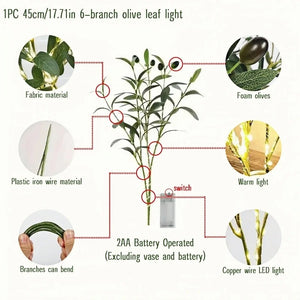 Artificial Olive Branch LED Light Faux Plant